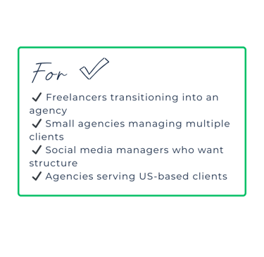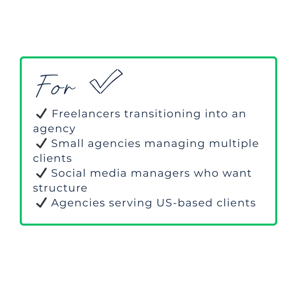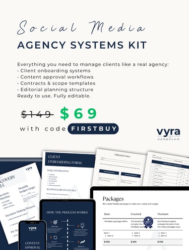 The Social Media Agency Systems Kit gives you a clear structure to manage clients from day one — with defined processes, expectations, and professional delivery.